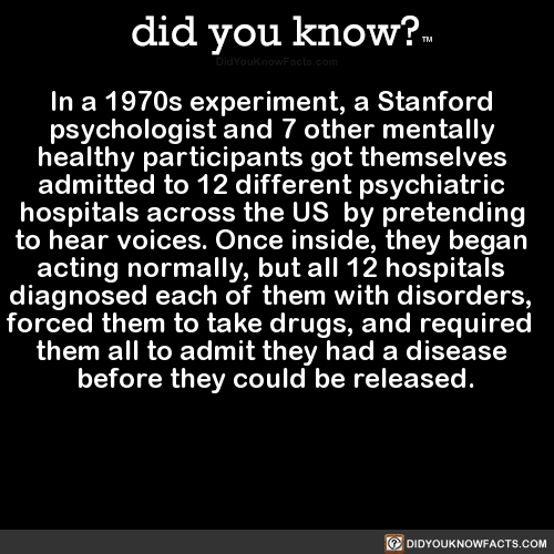 tl;dr: Do not use a study conducted in a dozen American hospitals by Rosenhan and his bored friends forty-five years ago that involved lying about symptoms to conclude that modern psychiatry is untrustworthy.